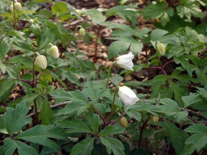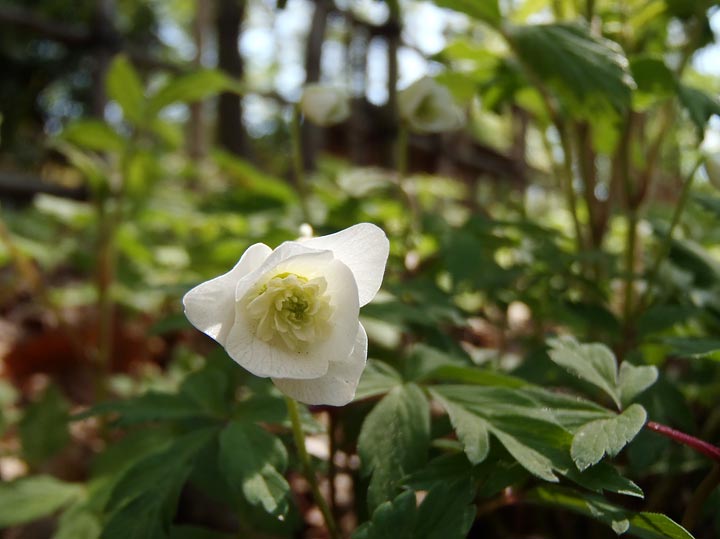 キクザキイチゲが咲いていた場所に、ヤブイチゲ(八重咲きイチリンソウ)の花が咲いていました。