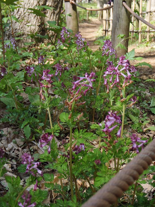 林の中に入ると、まず目にはいるのがこのムラサキケマン。