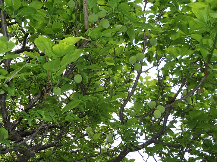 梅の木は緑に覆われ、たくさんの実をつけていました。