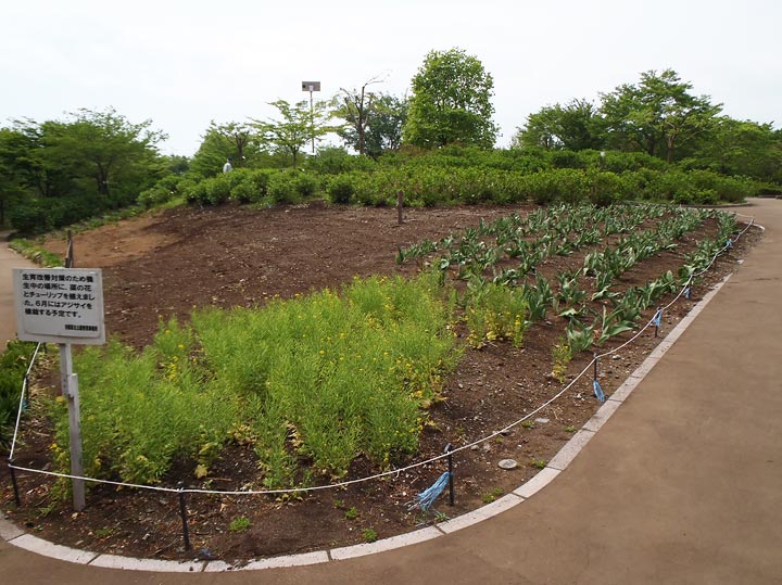 アジサイ畑の土壌改良のために植えられていた菜の花とチューリップは終わり。