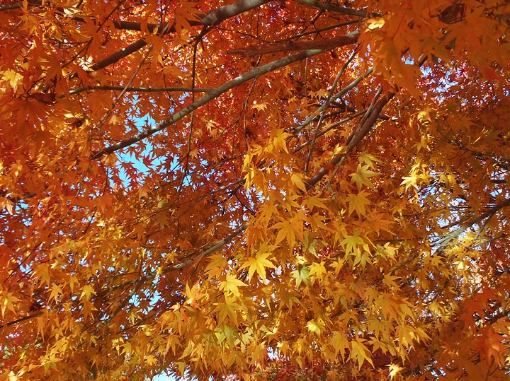 木の下に入って、その光の揺らめきと、紅葉の輝きを見た時の、驚きといったら。