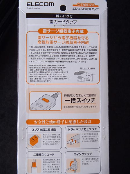 エレコムの一括スイッチ付雷ガードタップ T-K02-2625BKを購入した。