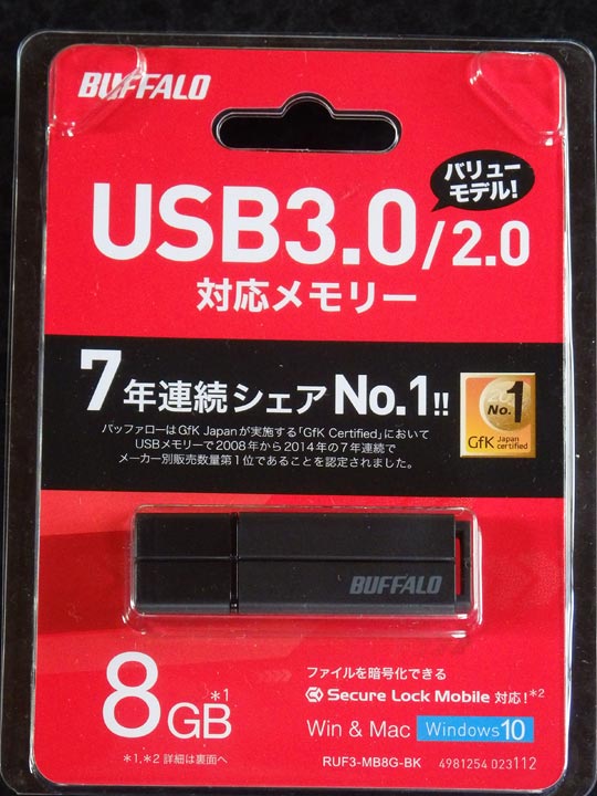 バッファローのUSB3.0対応USBメモリ RUF3-MB8G-BKを買った。