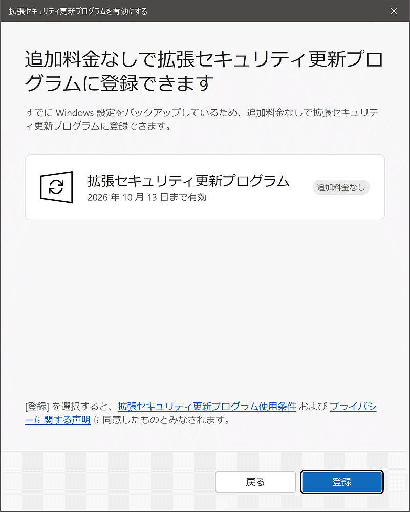 Windows 10 拡張セキュリティ更新 (ESU) プログラムを適用するにはマイクロソフトアカウントは必須です。
