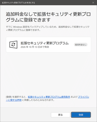 ただWindows 10 拡張セキュリティ更新 (ESU) プログラム適用後は、ずっとマイクロソフトアカウントでの利用が必須ではなく、あとでローカルアカウントに戻せ、Windows ESUも適用解除にはなりません(現時点では)