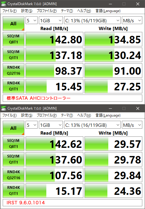 下が「Intel Rapid Storage Technology Driver_9.6.0.1014」を適用した測定値。